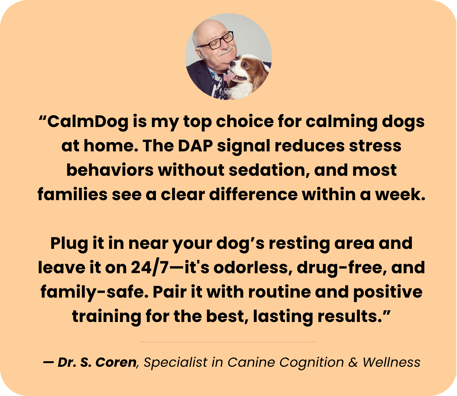 CalmDog addresses the root of the problem, helping you and your dog live happily together.